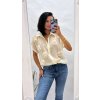 Tato elegantní halenka je perfektní volbou pro každodenní i speciální příležitosti. Vyrobena z lehkého, průsvitného materiálu, zdobena jemnými květinovými aplikacemi, které dodávají šarm a ženskost.